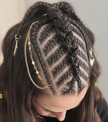 The art of sectioning hair into precise shapes all throughout the scalp and braiding the hair down its entire length with extensions.