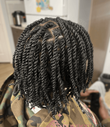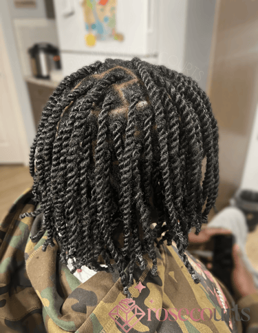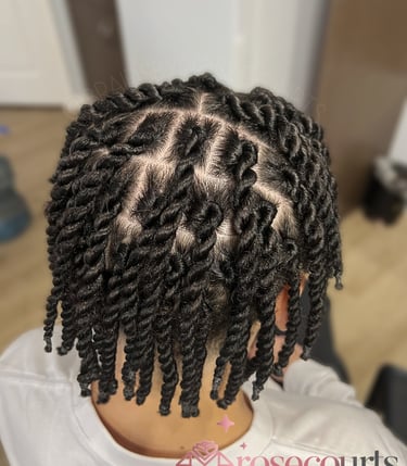 The art of sectioning hair into equal sections and twisting two strands in the opposite direction around each other.